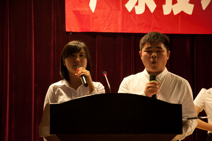学生代表余航同学、李燕梅同学,深情、激昂地朗诵经典名篇《少年中国说》,颂扬了爱国主义及民族精神,深深的感染了在场的师生。