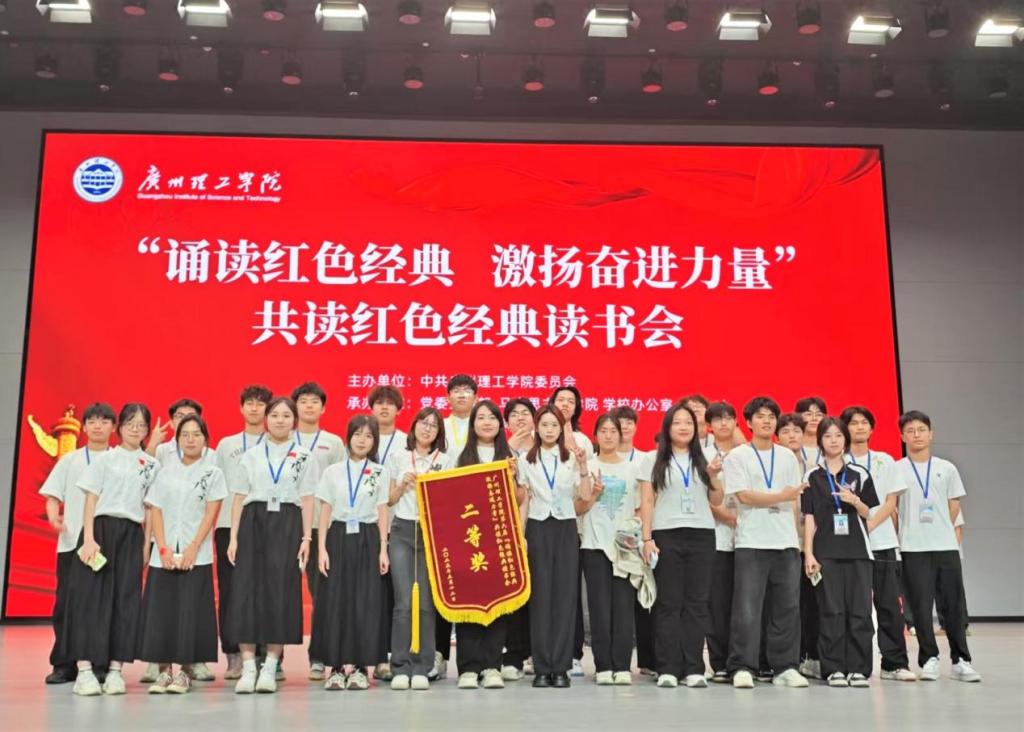 (曾煜晨)5月12日,广州理工学院图书馆读者协会迎来荣耀时刻!由中共广州理工学院委员会主办、图书馆等单位承办、读者协会协办的“2025年春季学期读书月活动‘共读红色经典读书会’”在惠州校区大礼堂隆重举行。副校长肖海、惠州校区管委会领导,以及来自工商管理学院、读者协会等12支参赛队伍,共千余名师生齐聚一堂,共同参与红色经典诵读比赛,经过激烈角逐,读者协会凭借出色表现,勇夺比赛第二名。
