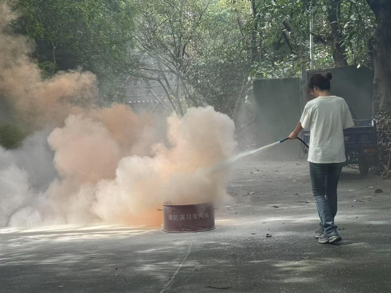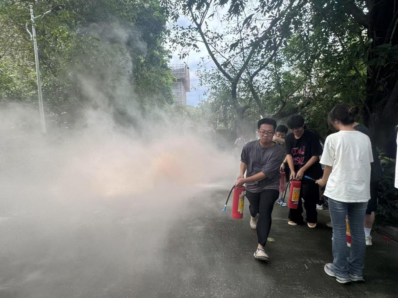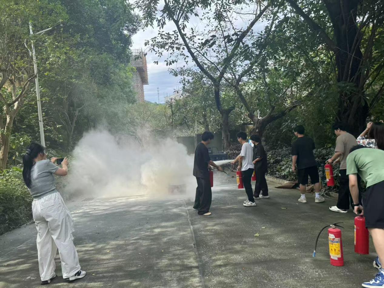 光有理论可不够,关键是要能上手!在李老师清晰演示了灭火器及消防过滤式自救呼吸器(防火面具)的正确使用方法后,我们迎来了最期待的实战环节——灭火器实操演练。在老师专业指导下,学生馆员严格按照“提、拔、握、压”的步骤操作灭火器。从初次尝试的紧张,到逐渐掌握瞄准火源根部、稳定喷射的技巧,每一次按压手柄,都是对“纸上谈兵”的超越。这次亲身体验,让我们真实感受到了灭火器的分量和操作要点,更重要的是,我们真切学会了如何正确应对初期火灾,应急处置的信心极大增强!