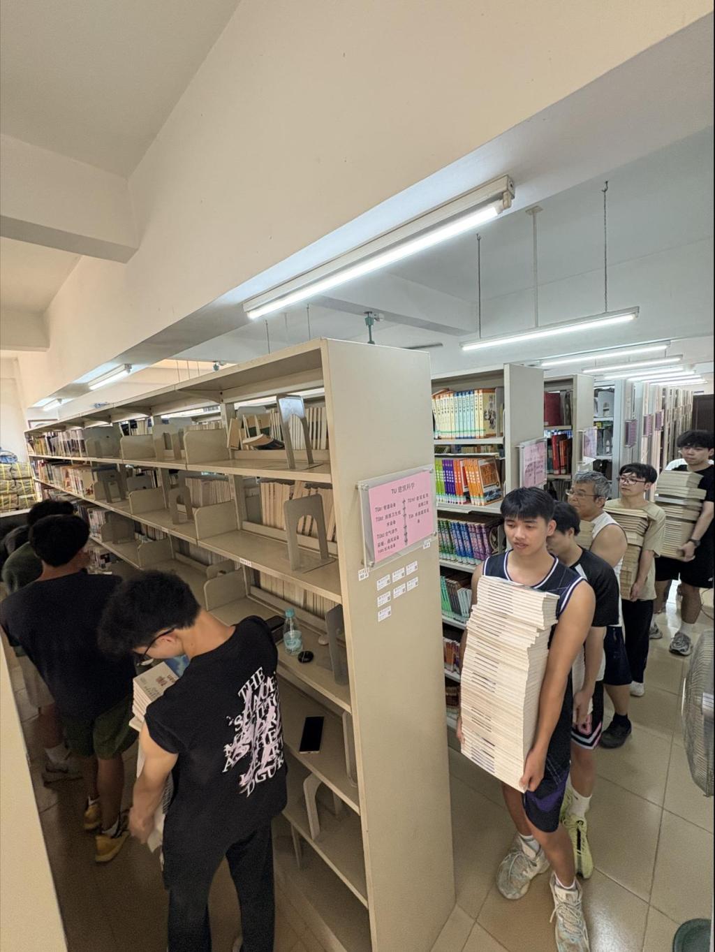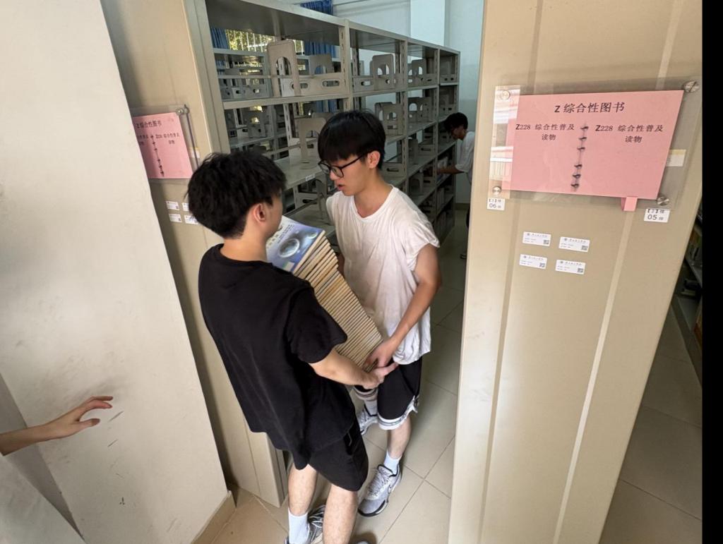自2025年7月3日,我校图书馆升级改造工程进入关键阶段,213、101室的15万册图书正式启动搬迁。为保障这项繁重而有序的任务顺利进行,图书馆招募了 20位本校暑期工同学,共同与图书馆教职工们并肩作战,投入这场意义非凡的建设浪潮,为新馆的顺利启用贡献着坚实力量。