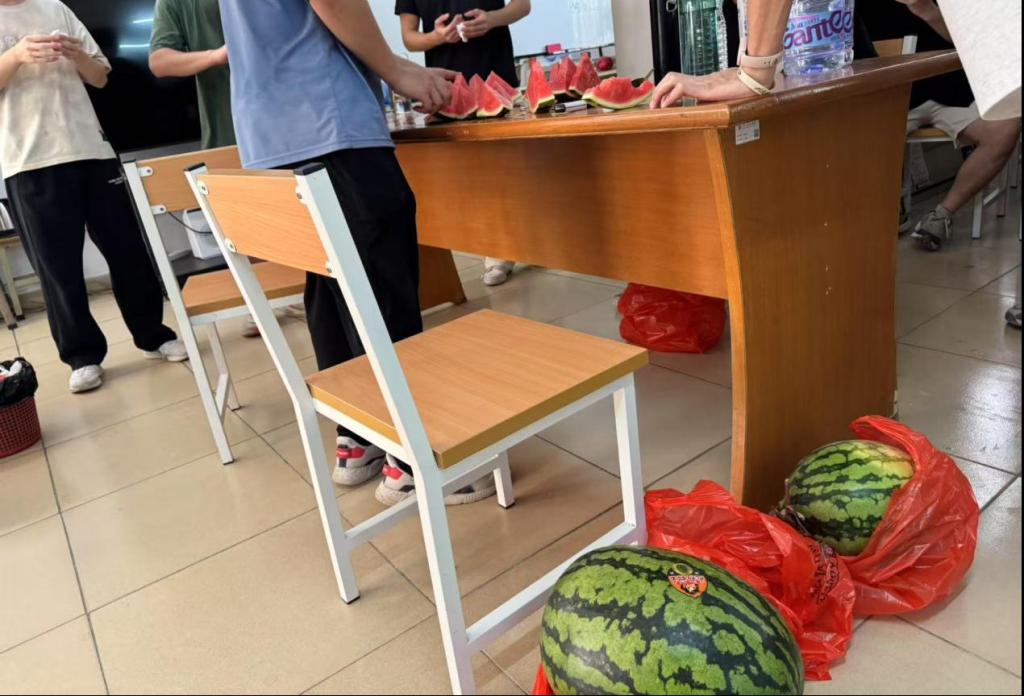 7月15日午后,太阳把空气晒得发烫。我们蹲在地上整理图书,满身大汗时,四个滚圆的大西瓜忽然出现在休息室。“同学们辛苦啦!快来吃西瓜解暑!”熟悉的爽朗声音从门口传来,窗外运货车的轰鸣渐渐远了,只余下清甜的汁水在师生间流转,把搬迁的疲惫都泡成了酸酸甜甜的夏日记忆。