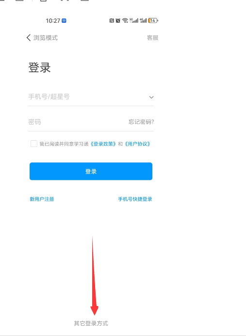 2.1进入登录界面之后,选择箭头所指的“其它登录方式”,如下图: