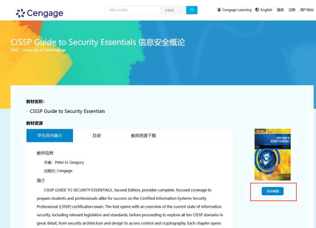 点击目标课程下方的“进入资源”,选择图书封面下方“点击阅读”即可在线阅读全文;
