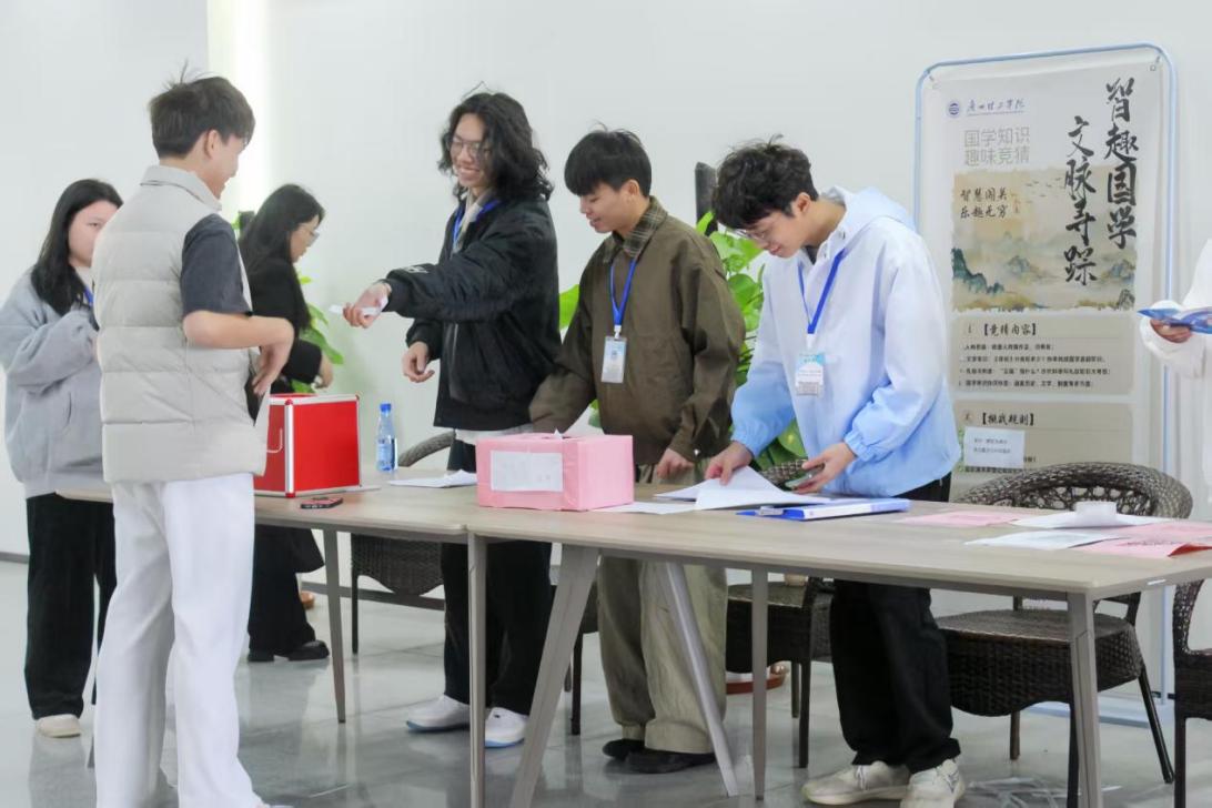 本届国学知识竞赛突破传统竞答形式,融合主题书展、国学书评与知识问答等系列活动,吸引了大量学生踊跃参与。活动现场设置红色题目箱,选手随机抽取涵盖诗词、历史、典籍等内容的题卡作答。答对者赢得特制奖品,现场欢声笑语不断。不少同学表示,这种“以赛促学、以展促读”的方式,既有趣又有料,让国学知识真正“活”了起来。